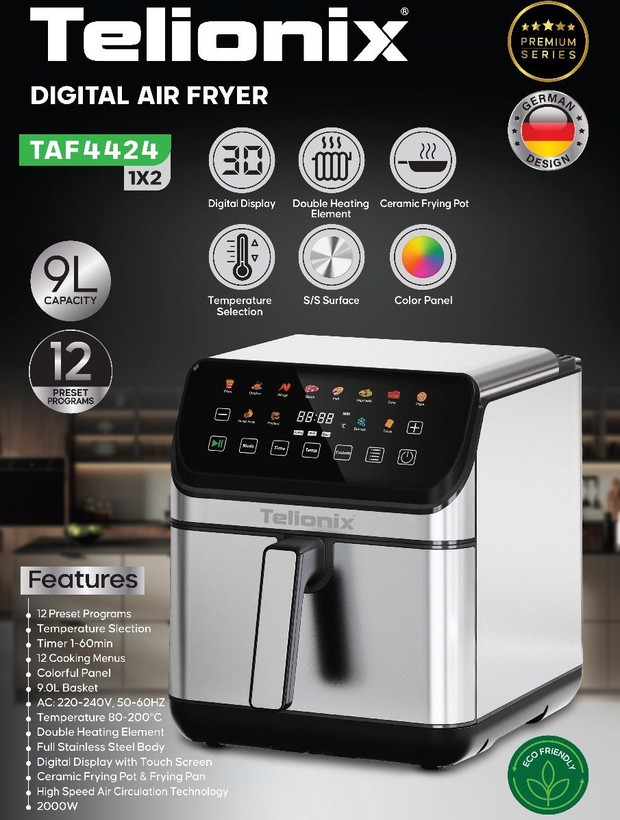 + موارد بیشترسرخکن بدون روغن Telionix TAF4424 با ظرفیت بزرگ ۹ لیتر و توان ۲۰۰۰ وات، انتخابی حرفهای برای پخت سالم و سریع غذاست. این دستگاه با گردش سریع هوای داغ، امکان سرخ کردن گوشت، سبزیجات یا سیبزمینی را بدون نیاز به مقدار زیادی روغن فراهم میکند.